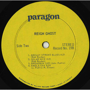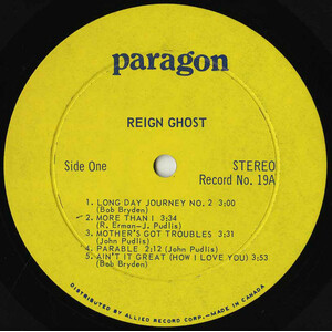 Second album with a completely different line-up except for Lynda Squires and myself. Recorded in 1969 and released many months after the band had folded in 1970 on the Paragon Records label (an affiliate of Allied Records). By the time it came out in 1969, my follow-up band Christmas was well under way and in a crazy turn of events both the second Reign Ghost album and the first Christmas album were released by Paragon on the same day!!
