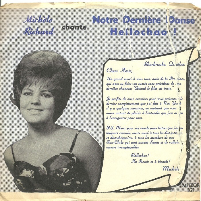 Richard, Michèle - Notre derniere danse b/w Hellochao (picture sleeve)