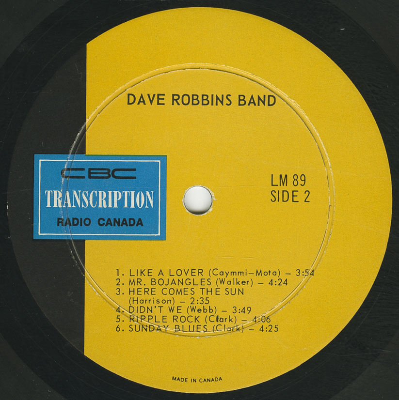 As Robbins’ CBC projects grew in scope, he moved toward full big-band recordings. In 1967 his orchestra backed singer Miles Ramsay on CBC LM-34, balancing popular repertoire with jazz charts, while in 1970 he led The Dave Robbins Band (CBC LM-89), which included his signature piece “Ripple Rock” alongside contemporary selections. These CBC projects, issued in limited runs for broadcast and educational use, are now seen as essential documents of West Coast Canadian jazz. They not only chart Robbins’ progression from small-group experimentation to ambitious big-band modernism, but also demonstrate his role as a unifying force among Vancouver’s finest musicians.