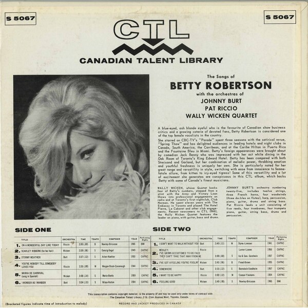 Label: Canadian Talent Library CTL 5067, Canadian Talent Library CTL 1067