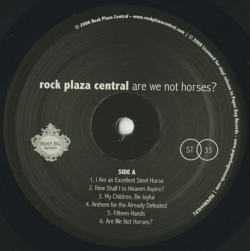 This would have been the perfect opportunity for a concept review. The situation almost demands it. Toronto-based Rock Plaza Central's Are We Not Horses? is after all a concept album, a song cycle about mechanical horses programmed to think they're real horses, the implication being that their artificial minds and souls still act like real ones. And they're caught in the middle of an epic war between good and evil. And their story is conveyed in Chris Eaton's high-flying wail of a voice, an odd instrument that would be completely off-putting if it weren't so touching in its derangement. All those elements just beg for a review that's equally far-fetched and out-there, something weird and coolly obtuse.