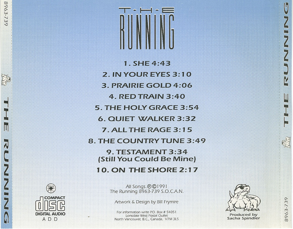 As one of the earliest independent CD's to emerge from Canada’s West Coast, The Running captures the spirit of Vancouver’s thriving indie scene of the early 1990s and remains a rare gem in Canadian music history.