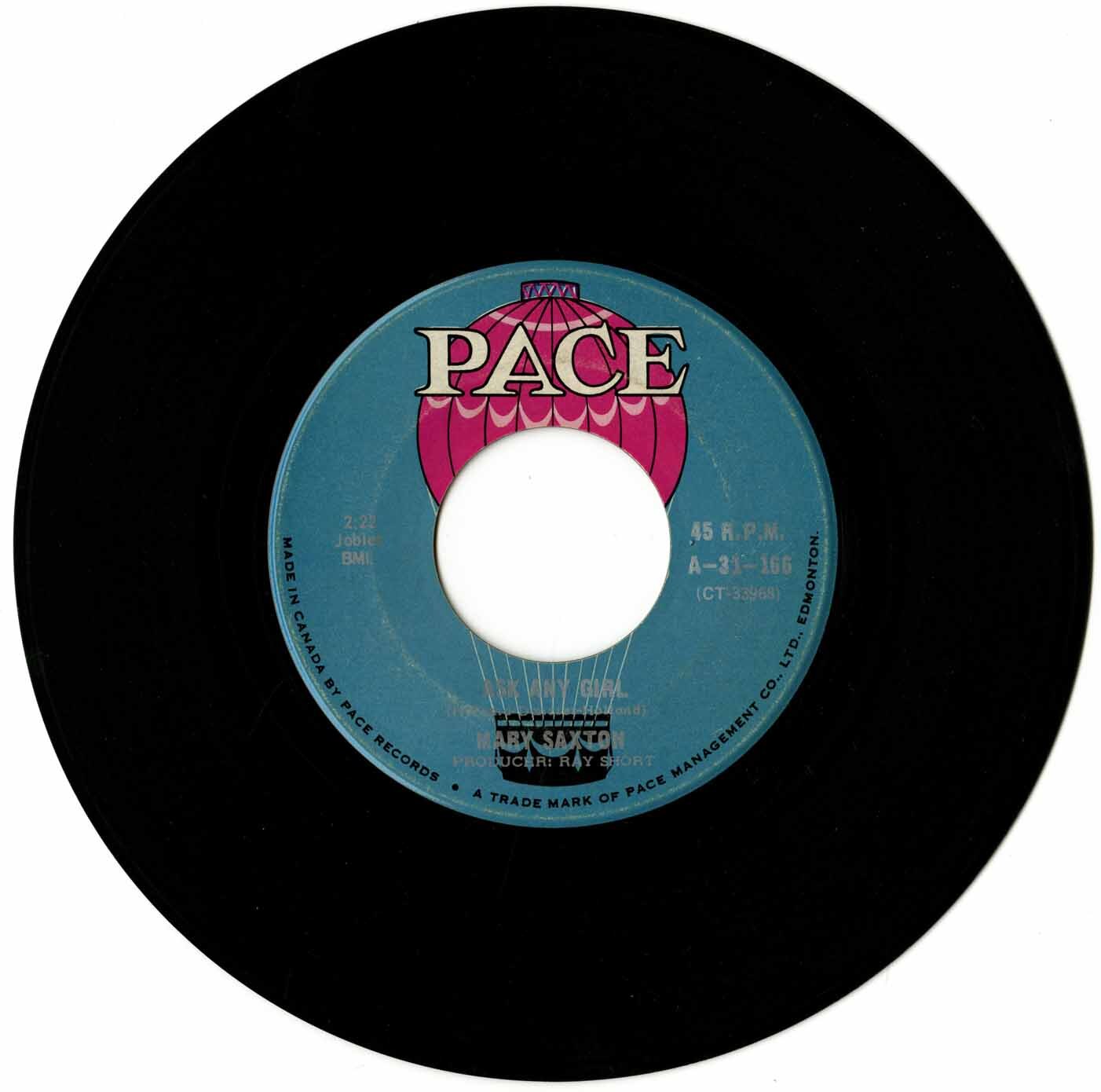 By the mid-1960s, Saxton was performing with top local musicians, including members of The Lords — a popular Edmonton garage band — and lending her voice to backup sessions for Pace Records, an independent label focused on local talent. Her debut solo singles for the label, produced by the eccentric and legendary Gary S. Paxton in the U.S., showcased her dynamic range and early promise. Tracks like “Losing Control” and “Ask Any Girl” blended northern soul with brassy, upbeat pop, earning regional airplay and critical interest, even as they remained under the radar nationally.