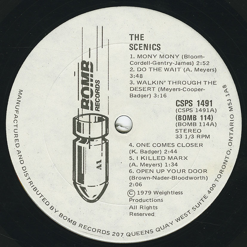 Cover art is by Andy's high school friend Dave Montle. It began life as a larger mixed-media collage/drawing. LP executive producer (and Toronto DJ) Keith Elshaw suggested we use a small section of it as the cover art, and so we did. Dave went on to design covers for the Scenics post millenia CDs.