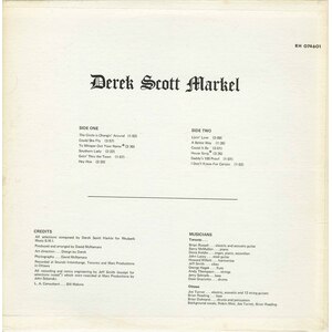 Derek Scott Markel's first album, containing 12 original compositions. The first side is more in the rural singer-song-writer folk composition vein. The second side has a bit more varying styles ranging from the folkish to folk-psych ("House Song") and blues ("I Don't Know for Certain").