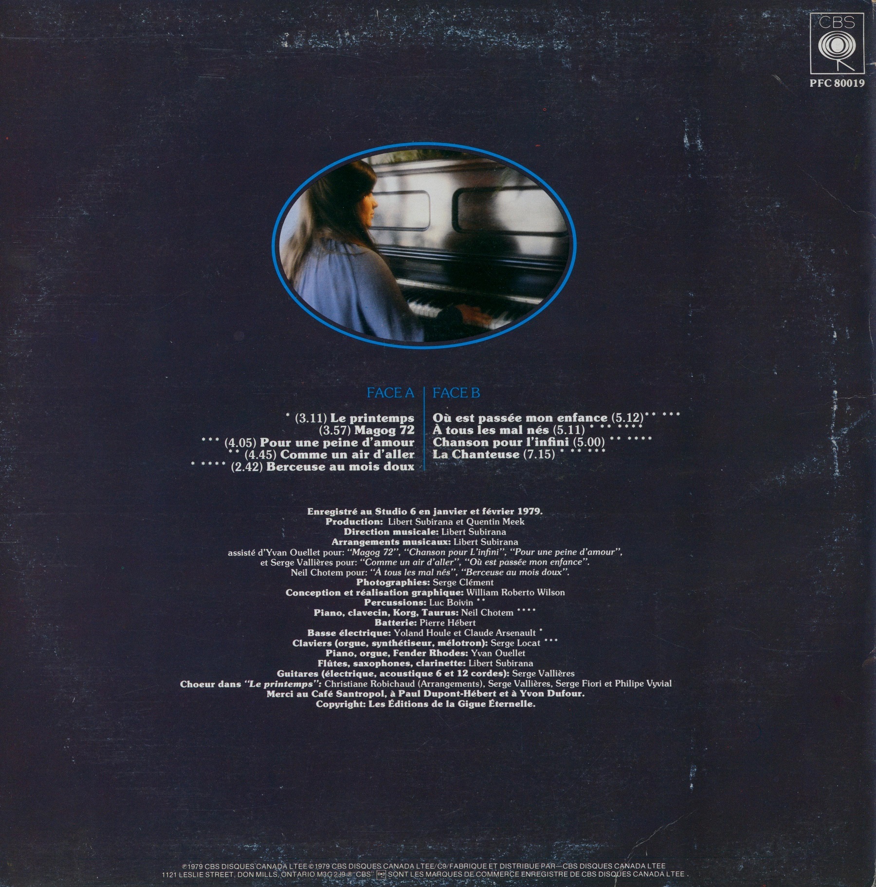 Yvan Ouellet: piano (A1, A2, A4, B1, B3, B4), electric piano (Fender Rhodes) (A3, A4), organ (A2, A3, A4, B3), harpsichord (A5), synthesizer (Korg) (A5)