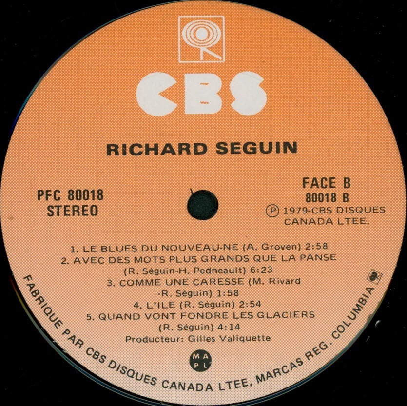 Richard Séguin’s first solo album followed later that year, launching an intensely creative period. His early solo work remained rooted in folk traditions, but as the 1980s unfolded, his sound evolved toward a powerful fusion of folk and rock. His second solo album, Trace et contraste (1980), further refined his poetic songwriting and sophisticated arrangements. Although well regarded among his early catalog, it remains one of his few recordings never officially reissued due to the loss of the original master tapes.