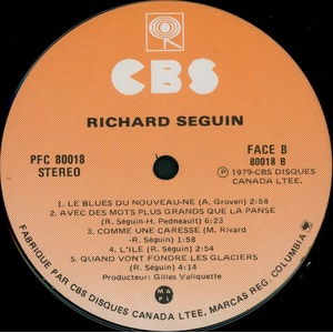 Richard Séguin: vocals (A1–B5), 6-string acoustic guitar, 12-string guitar, classical guitar, alto flute, harmonica