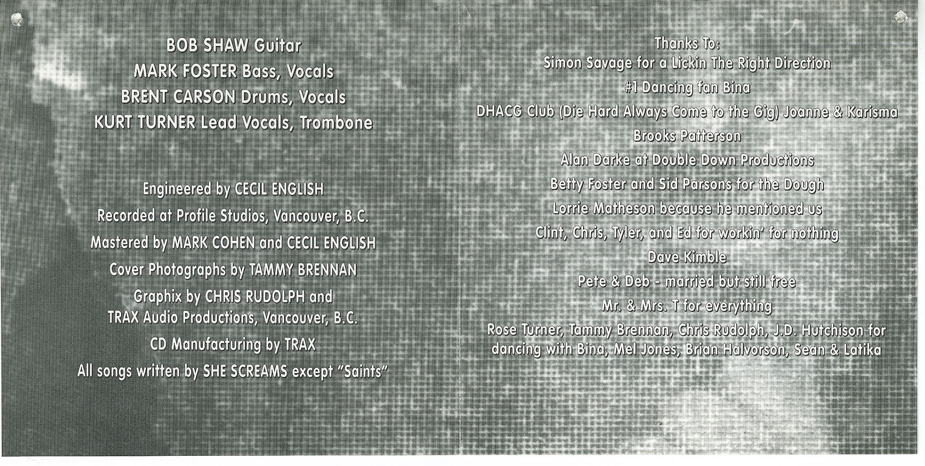 Recorded at Profile Studios, Vancouver, British Columbia