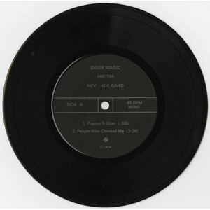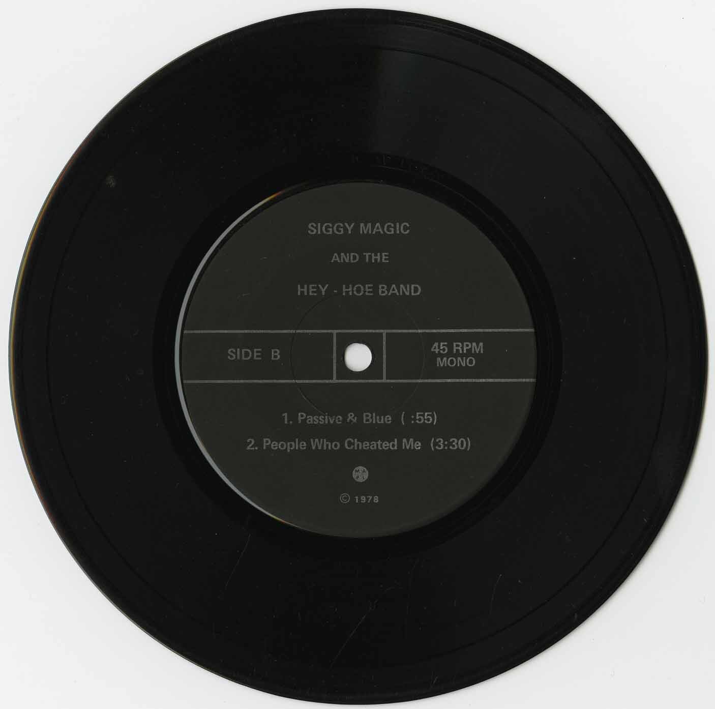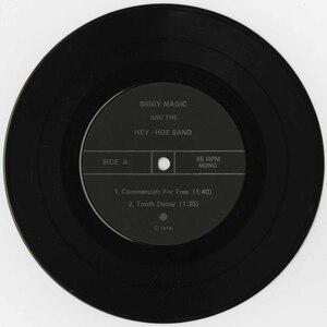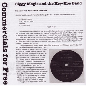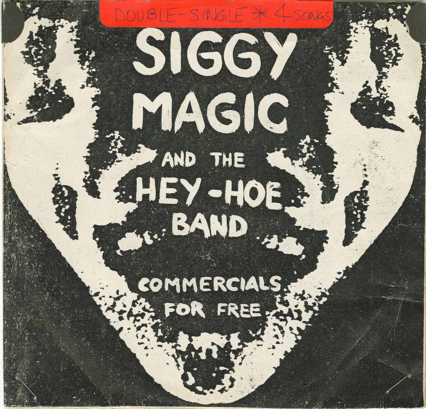 "Siggy Magic and the Hey-Hoe Band - Commercials for Free EP (Own, 1978). A country whose contributions to the punk vernacular rarely extend beyond tepid pop excursions or the substandard aping of their southerly neighbors. Now, now, before any Canadian aficionados feel unduly provoked and start spouting lines like “Hasn’t this asshole ever heard of the Neos, Dayglo Abortions, DOA, etc.?” let me lazily post the following disclaimer: The snare above is only in reference to the real never-weres—those bands or individuals whose records were pressed in the low hundreds and whose aspirations extended no further than their own vanity. It’s not my intention to undermine or denigrate this record’s musical superiority through qualifiers, but the reality that the UGLY sounds of the Hey-Hoe Band originate from the bucolic expanse of the Great White North is a decisive part of what makes the disc so remarkable. The fact that it’s a signature slab of strangulated roar / fortified grunt and strut, paralleled only by its closest philosophical compatriot—the first Snuky Tate EP—is of equal importance, too! The Commercials for Free EP, its tracks the proverbial lead-pipe cinch for inclusion on KBD #9 or #10, ended up on the last installment of Smash the State instead and was effectively lost to a wider audience. In a better world, this 45’s reputation would linger on the trembling lips of record collecting mama’s boys and forum trolls the world over. Not surprisingly, both Siggy and his EP were concepts that hatched and expired within the confines of the studio. The single, issued in an edition of 200 copies, features four songs; each tune corresponding to a specific act within a film of the same name. Chronicling the sojourn from yokel to punker, the record’s only dud, The People Who Cheated Me, was intended for the film’s denouement and expressed Siggy’s ultimate disenchantment with his newfound lifestyle. Poor Siggy."
