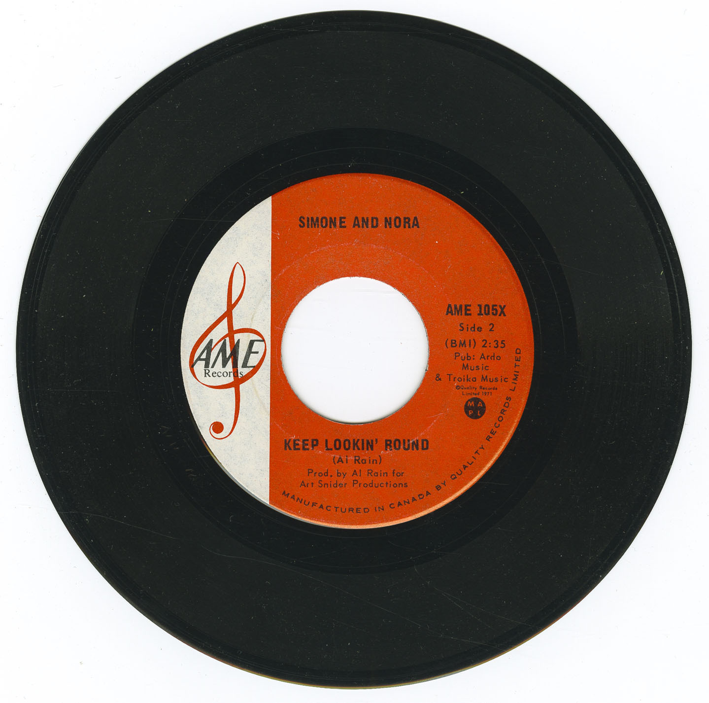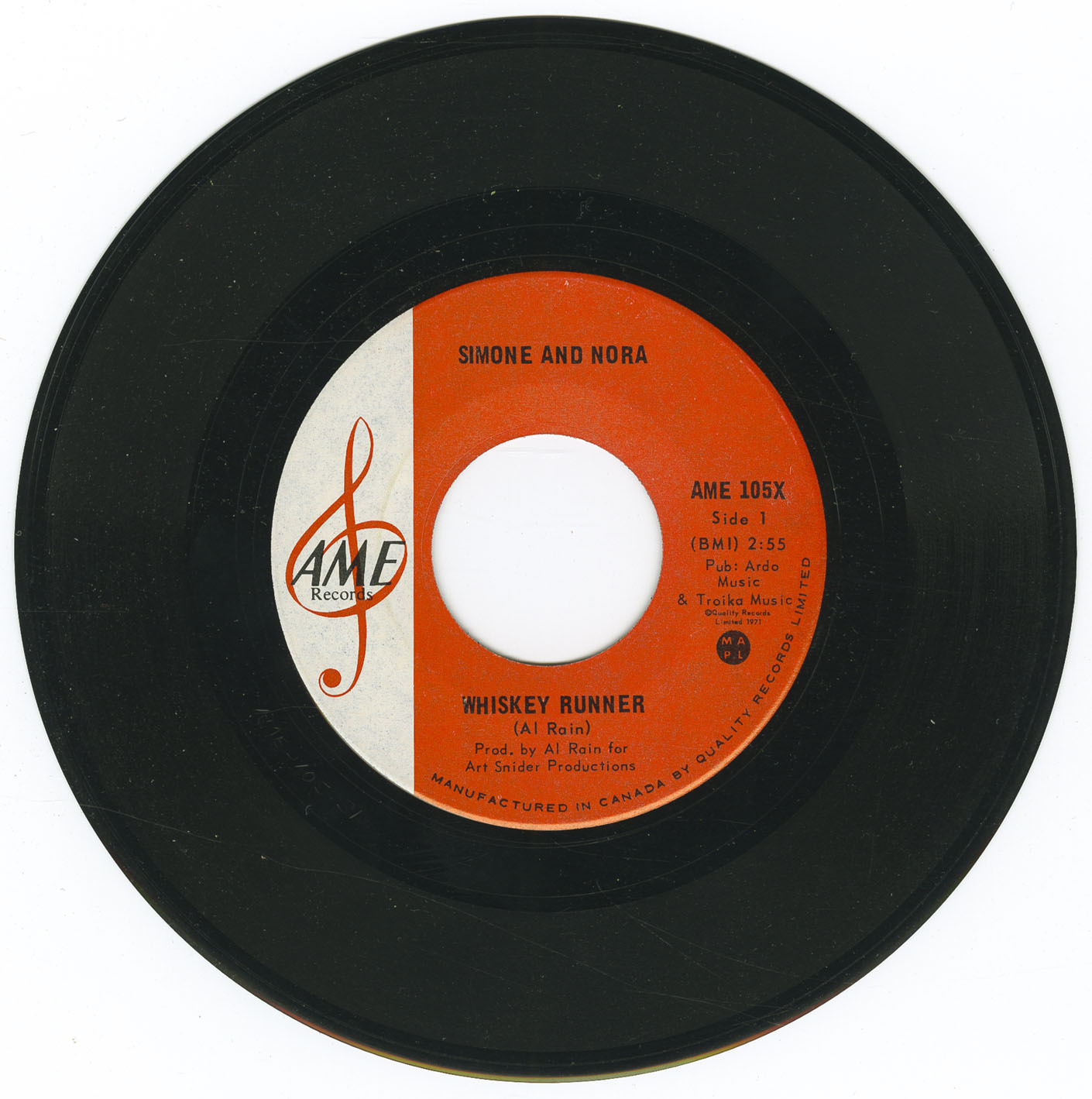 Simone and Nora were a Canadian sister country-folk vocal duo active in the early 1970s. Their only known single, “Whiskey Runner” b/w “Keep Lookin’ Round,” was released in May 1971 on AME Records, a label associated with producer Al Rain and Art Snider. Both songs were written and produced by Rain and recorded at Sound Canada Recording Centre in Toronto, with manufacturing handled by Quality Records Limited. Contemporary RPM coverage described the single as stylistically difficult to categorize, noting its potential appeal to middle-of-the-road programmers while also attracting interest from country radio due to its subject matter. The record received national trade exposure and charted briefly in RPM’s country listings. By 1972, Simone and Nora were identified in RPM as Simone and Nora Hart, and by the mid-1970s both sisters appeared as performers on GRT’s Country Gold series. The project documented them recording both as a duo and individually: the sisters contributed a joint performance of “Snowbird” on Country Gold, and returned as a duo on Country Gold Vol. 2 (24 Current Hits), where they collectively performed four tracks.