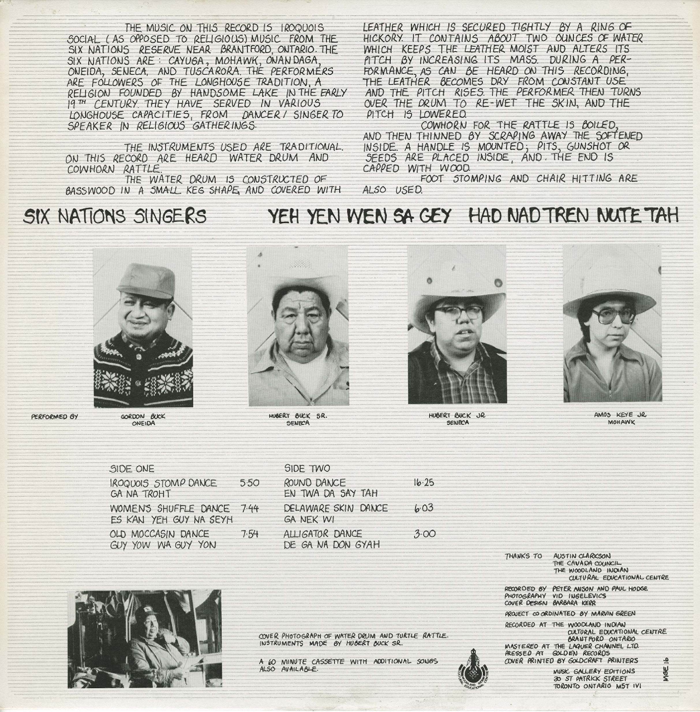 Recorded at the Woodland Indian Cultural Educational Centre, Brantford, Ontario. Mastered at the Laquer Channel Ltd. Pressed at Golden Records.