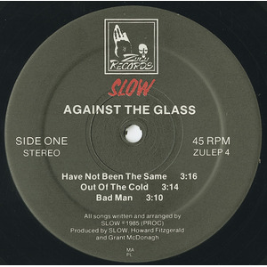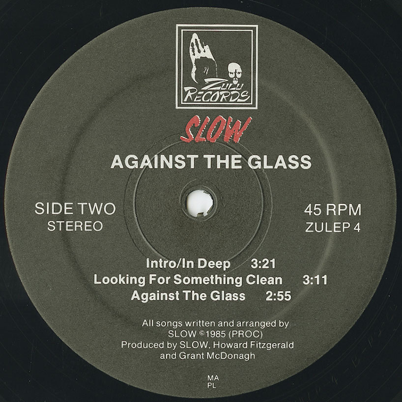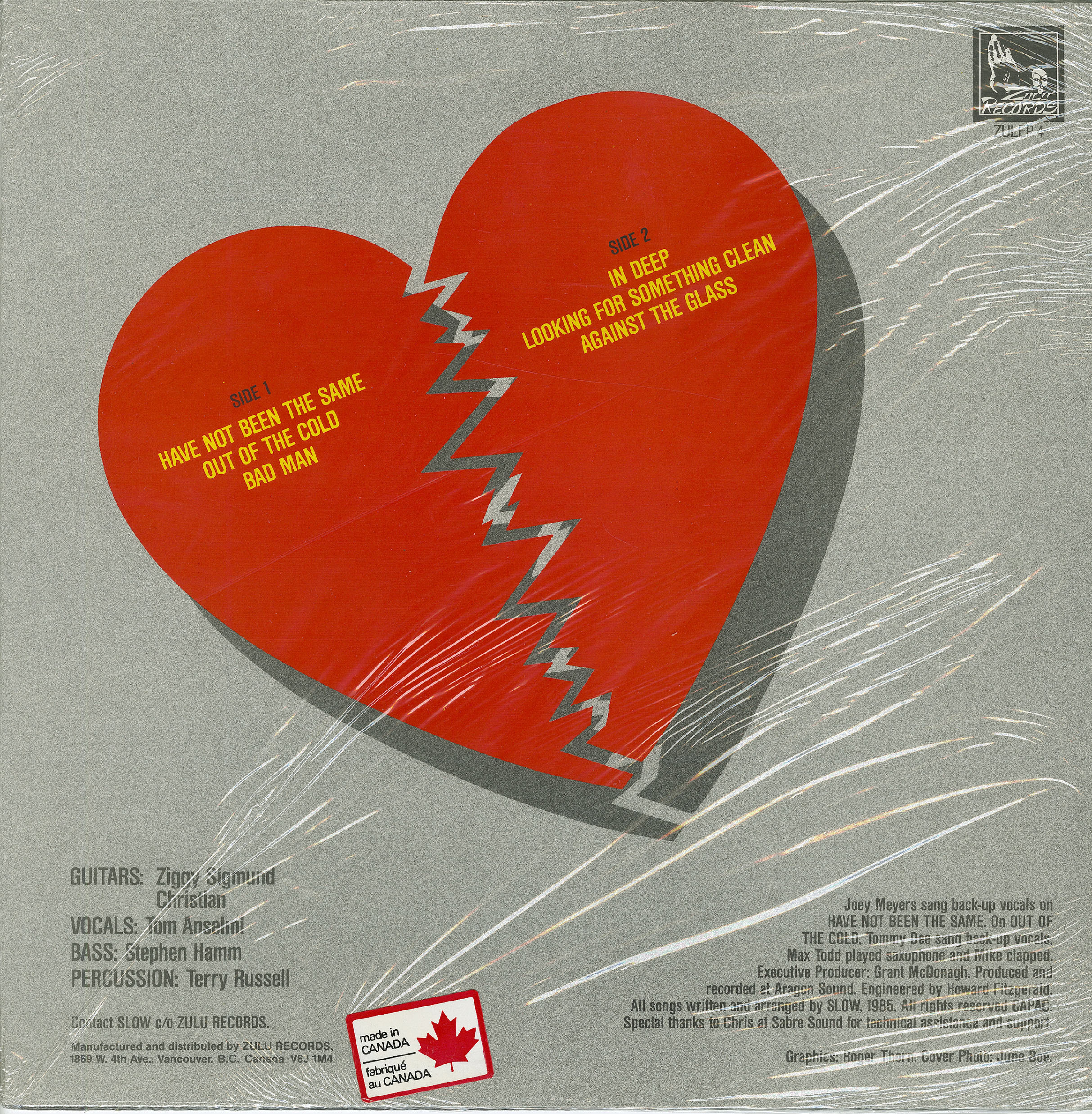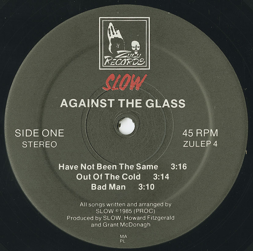 That same year, Zulu also released Slow’s defining longer statement: the six-song 12-inch EP Against The Glass (ZULEP 4). With Grant McDonagh involved in production/executive production and Fitzgerald again behind the board, the EP captured the band’s full range—straight-ahead demolition rock, serrated punk, and a sense of tension that never lets up. The opening track ‘Have Not Been The Same’ became especially iconic, its title later echoed in Canadian rock historiography, and for many listeners it remains the single best entry point into what Slow were: confrontational, hooky, and utterly unpolished in the best way.