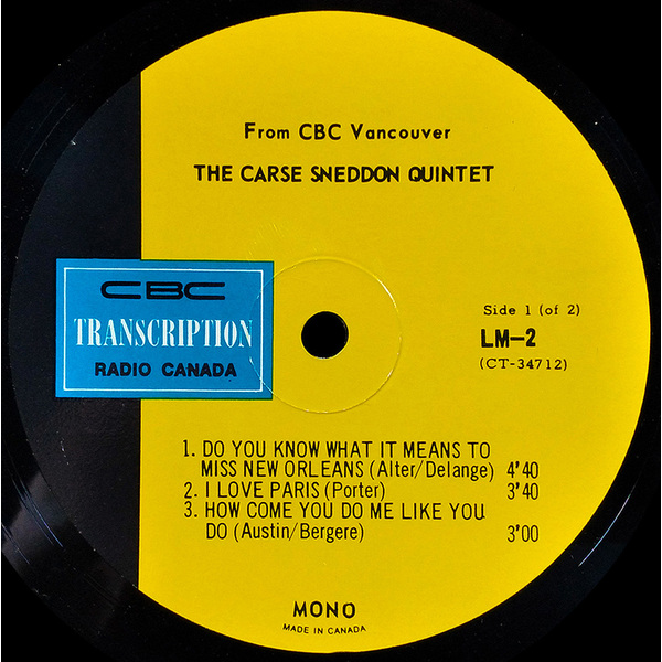 Jazz, CBC Radio Canada LM Series, 1960's, British Columbia