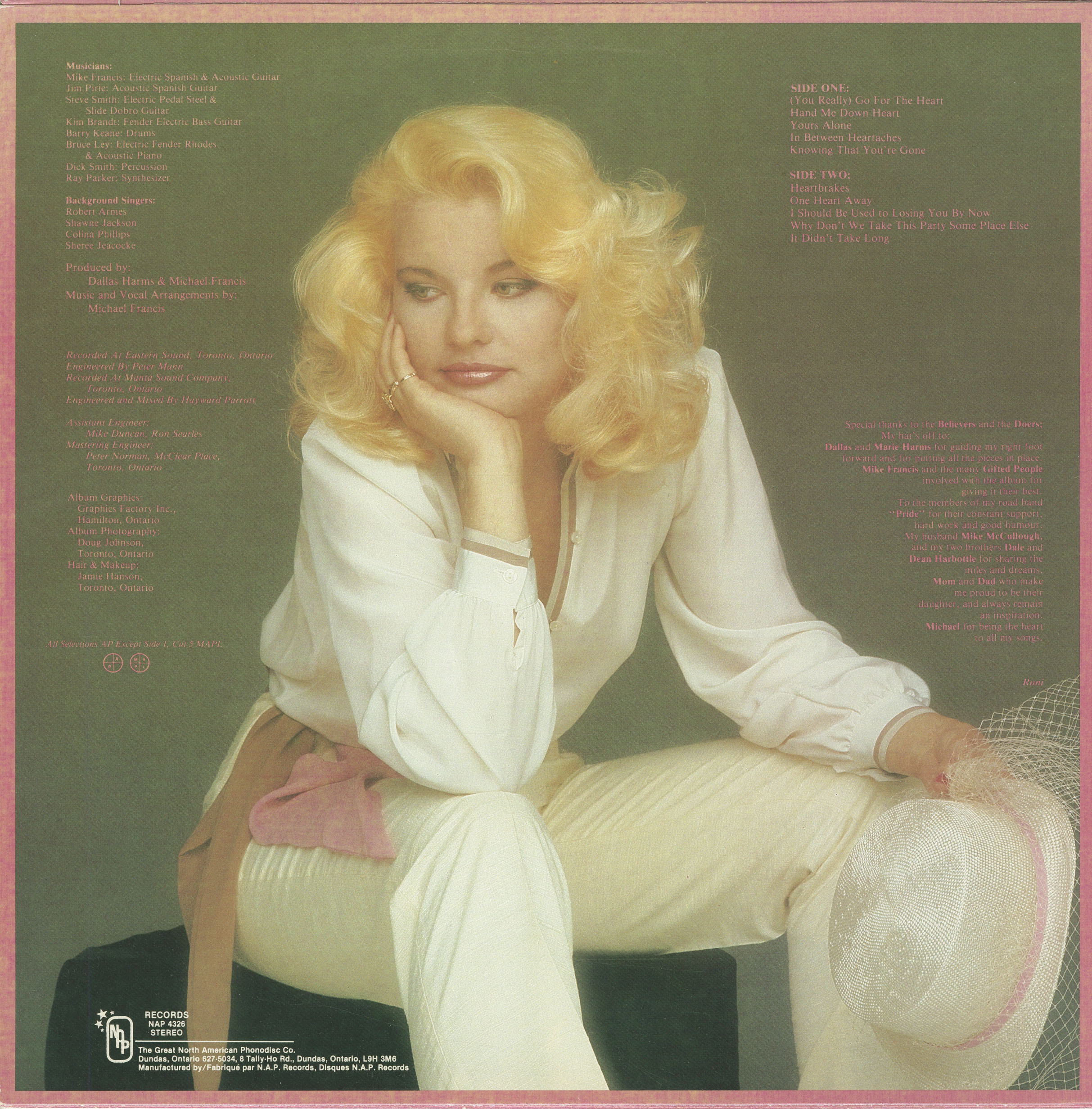 Produced by Dallas Harms and Michael Francis; and M.B. Recording – M. Brooker Productions Co.