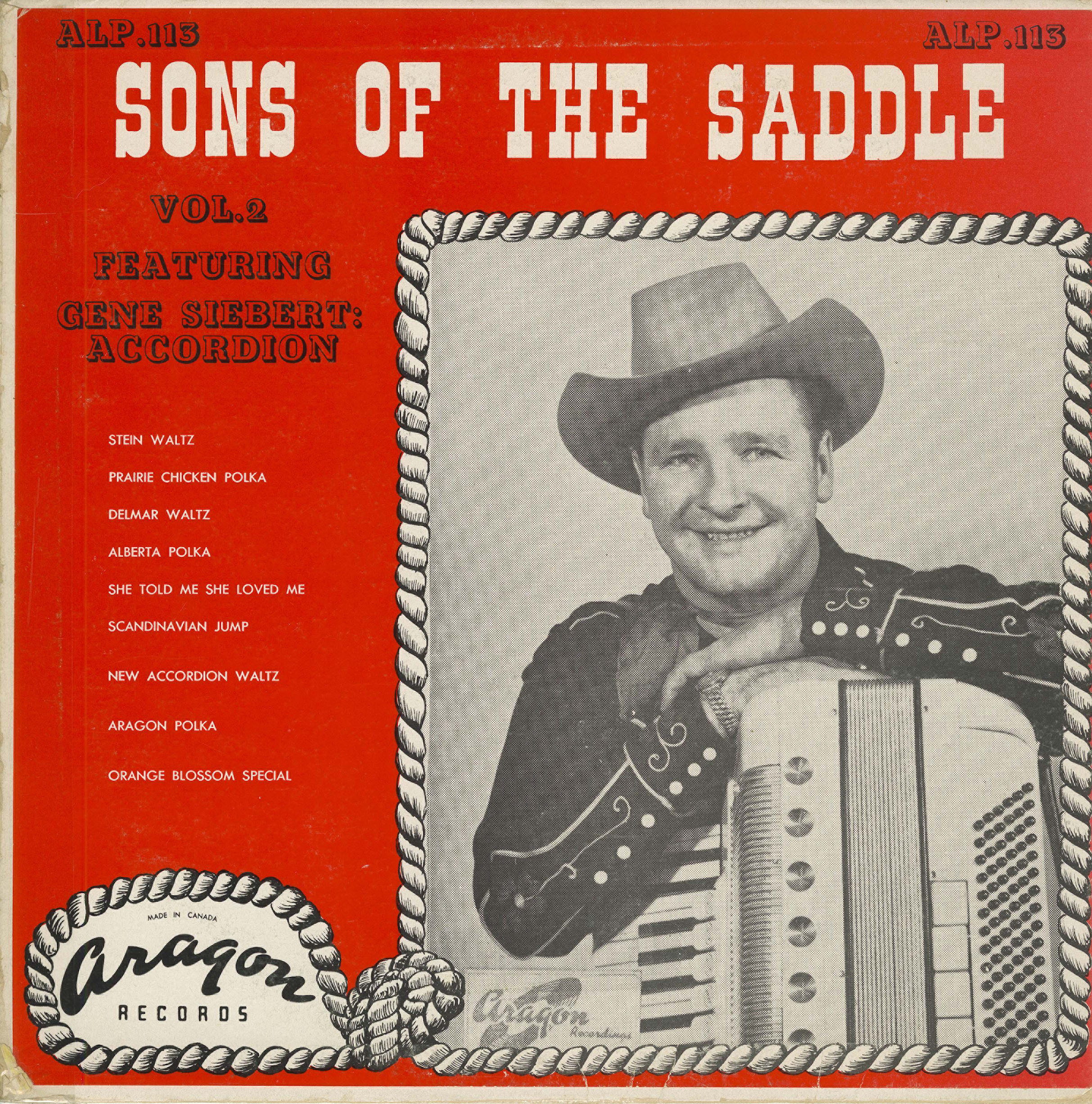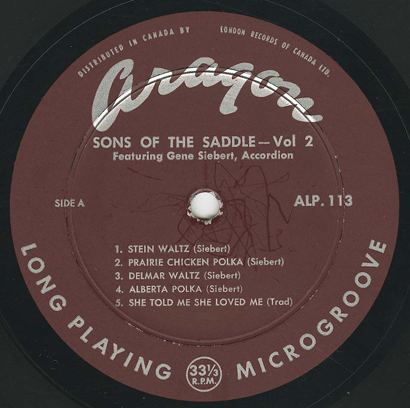 The group’s recorded output consists of a small but significant run of Canadian LPs issued in 1959 and the early 1960s. Two albums were released on Aragon Records—Sons of the Saddle Vol. 1 Featuring Vic and Lenny Siebert (ALP 108) and Sons of the Saddle Vol. 2 Featuring Gene Siebert (ALP 113)—documenting different Siebert-led configurations of the band. A later self-titled LP on Canatal Records (CTLP 4003) presented a repertoire drawn largely from contemporary country standards alongside original material associated with the group.