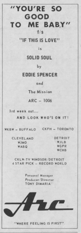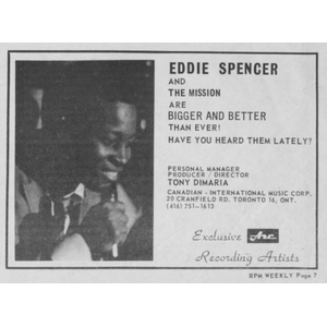 By mid-1967, Spencer was fronting the R&B band The Power, delivering sweat-drenched sets and commanding midnight floor shows with what RPM Weekly described as a “tough-as-nails delivery.” Inspired by Jimi Hendrix and the new rock underground, Spencer formed a new group, Eddie Spencer and The Mission, fusing rock and soul with some of Toronto’s top musicians. The Mission was featured in the July 8, 1967 issue of RPM Weekly, which described Spencer as “a powerful solo act… with a style that ‘gets to’ his audience.”
