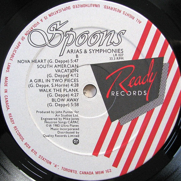 Arias & Symphonies was the second album by Burlington’s Spoons and includes the highly successful singles “Nova Heart” and “Arias & Symphonies.” It remains one of the most celebrated Canadian new wave albums and was later reissued in a deluxe 30th Anniversary Edition by Sparks/Ready/Universal.