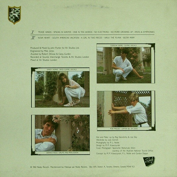 Their first album, Stick Figure Neighbourhood, was recorded in 1981 at Grant Avenue Studios in Hamilton with a then-unknown engineer named Daniel Lanois. Its off-kilter art-pop sensibility earned them glowing press and strong college-radio support, marking the arrival of a band unafraid to be both cerebral and catchy. But it was the follow-up single “Nova Heart,” produced by Roxy Music’s John Punter, that transformed them from a promising indie act into national figures. Propelled by Deppe’s yearning vocals, Preuss’s shimmering synths, and Horne’s fluid basslines, the song became an instant new wave anthem and anchored their breakthrough album Arias & Symphonies (1982), recorded at George Martin’s Air Studios in London. Its futuristic sheen and cinematic romanticism captured a generation, earning the record a place among Chart magazine’s “20 Most Influential Canadian Albums of the 1980s” and later inclusion in Bob Mersereau’s Top 100 Canadian Singles of All Time.