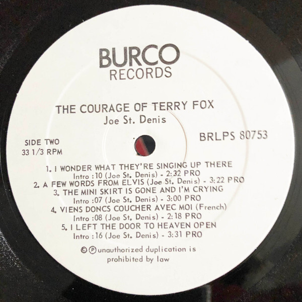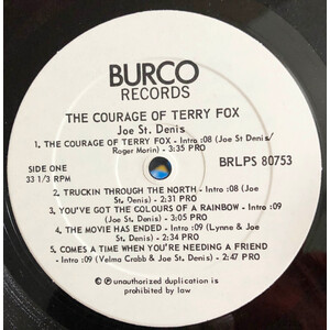 Joe St. Denis, of North Bay, Ontario - "The Courage of Terry Fox", released on Burco BRLP 80753.