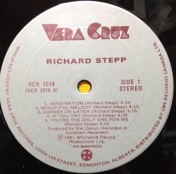 "Richard Stepp" is the title of Richard's second LP. It was recorded in Edmonton, Alberta at Wes Dakus' Sundown Studios, and at Smooth Rock Studios in Calgary, Alberta, Canada. Along with Wes, the sessions were produced by Jim Gaines and Howard Steele. Some noted Canadian musicians played on the album, including The Guess Who's Garry Peterson on drums, sax ace P.J. Perry, guitarists Gaye Delorme and Brent McNab, and keyboard wiz Mavis McAullie (among others). The music covers a range of styles under a pop/AOR umbrella. The opening number Imagination still gets airplay in Canada, more than 20 years after it's release. To balance the softer tunes, there is the rocker Can You Feel My Love, the bluesy Tried So Hard, and the boogie-woogie piano workout on the album closing Too Hot To Handle. Other highlights include If You Try, Sooner Or Later, and Beautiful Melody.