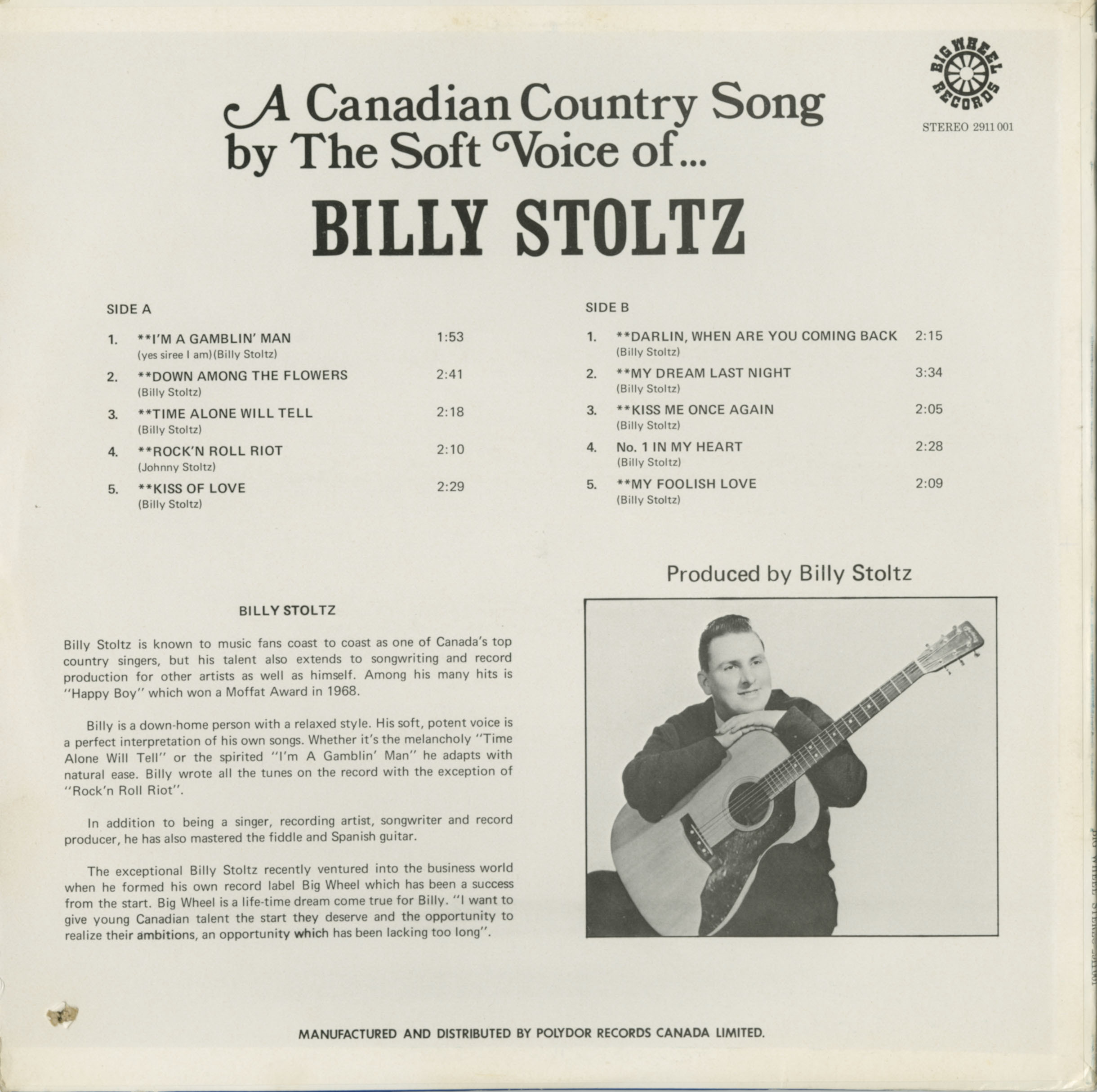 Billy Stoltz - A Canadian Country Song BACK