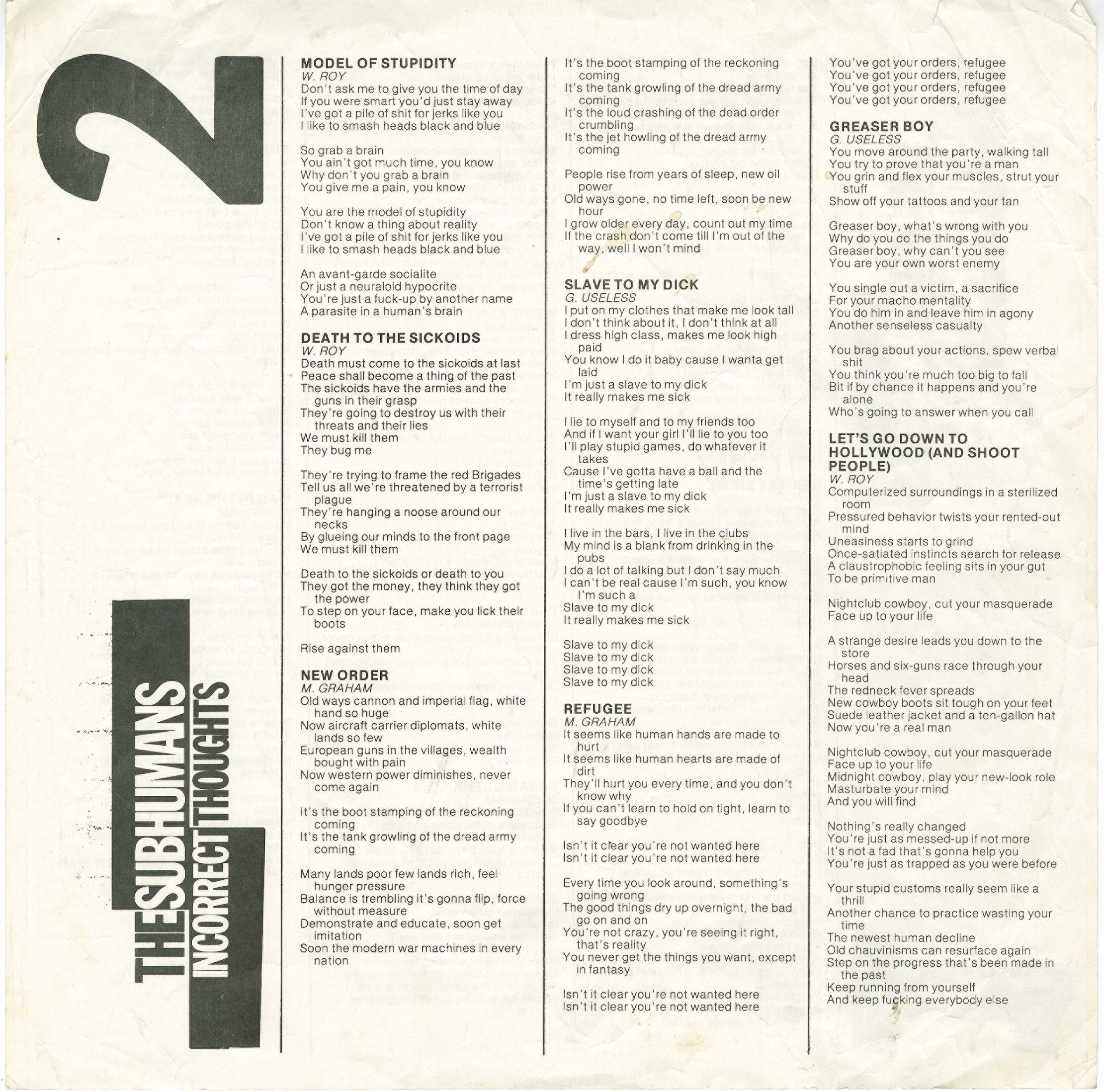Perhaps the album’s most notorious moment comes with “Slave to My Dick,” a caustic and darkly humorous takedown of male sexual entitlement that rides the line between satire and provocation. It’s a prime example of the Subhumans’ ability to dissect social issues with both ferocity and intelligence.