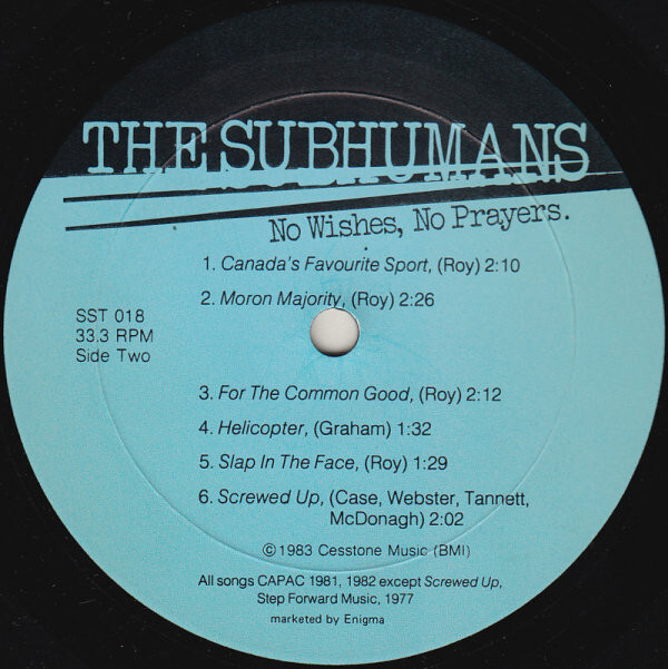 “Time has been kind to the Subhumans’ music — it sounds as fresh and invigorating as the day it was cut. The political sentiments are as valid today as they were in 1979 or ’80. The Subhumans are still pissed off — and with good reason.”