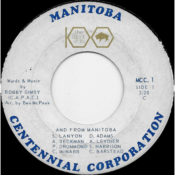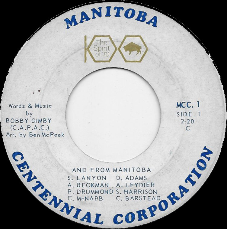 News broke in April 1970, just before the recording of Manitoba, that the Manitoba Centennial Corporation has also hired Bobby Gimby to write a Manitoba centennial song, a deal which had apparently been struck in the autumn of 1969.