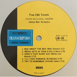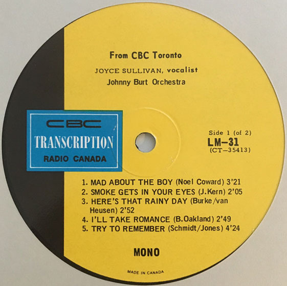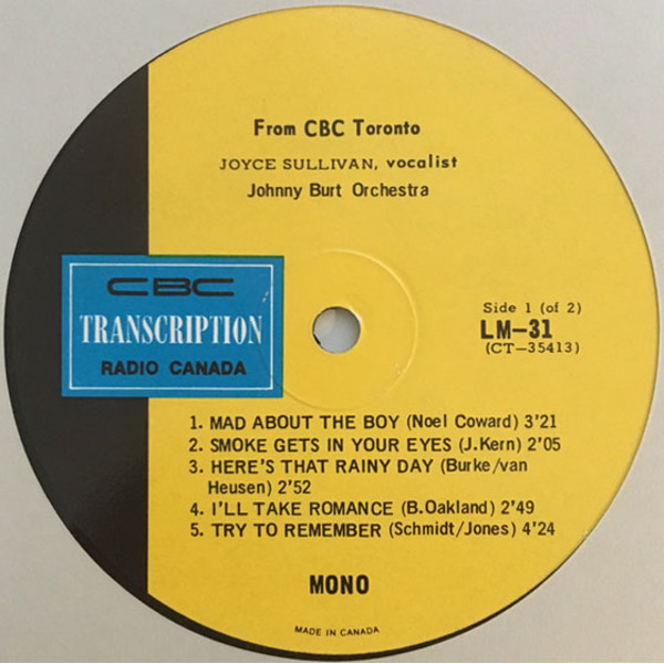 In 1965, she released her first solo LP, The Songs of Joyce Sullivan, on the Canadian Talent Library (CTL). The album featured twelve of her favorite romantic ballads, arranged and conducted by Johnny Burt, Pat Riccio, and Wally Wicken. Each brought a distinct orchestral style—from Burt’s lush mood arrangements to Wicken’s show-tune flair—while Sullivan’s vocal performances displayed emotional range and technical finesse. Tracks like “Speak Low,” “Say It Isn’t So,” and “You’ll Never Know” showcased her ability to move seamlessly between jazz-inflected torch songs and more intimate pop standards.
