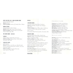 This collection of instrumental music blended with environmental sounds began with my fascination with the north shore of Lake Superior in the early seventies. I became interested in exploring the concept of a spiritual north perhaps in a similar vein as Glenn Gould's "Idea of North" series he did for the CBC, except I hadn't heard of Glenn Gould's series until much later. In 1984 I was invited north as a writer in residence on a scientific trip to the Chuckchi Sea, north of the Bering Strait, to study he feeding habits of whales and walrus. The experience changed my life and when I returned I commenced this project. It was five years in the making. In the interim, Over My Head and Ghost Parade were released. I was doing a lot of theatre soundtrack music then and enjoyed writing pieces where the mood was less deterministic than a verbal piece and yet still told a story. Pieces on this album range from the Nahanni River, Kodiak Island, Haida Gwaii, Lake Superior, Lancaster Sound and Chukchi Sea. Nominated for Juno for Best Instrumental Album, 1990, this most Canadian of albums was refused Canada Council funding for being supported by American scientists. I have never sought Council funding since that time. The multi-discipline world of science and arts had been tremendously rewarding, and I am forever grateful to Dr. John Oliver of Moss Landing Marine Labs, Moss Landing California for the opportunities he gave me.