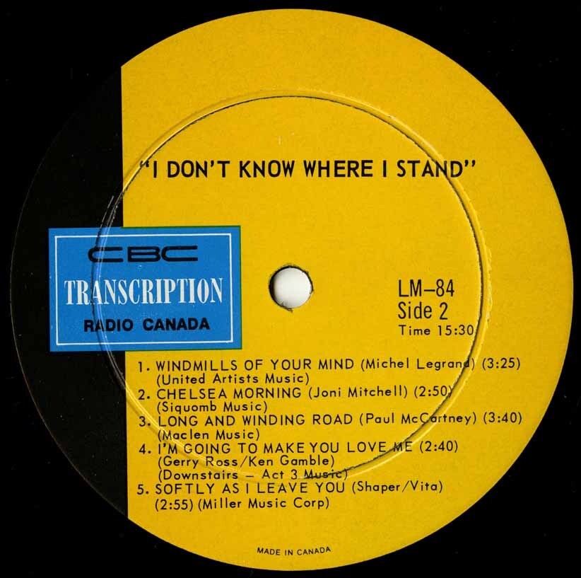 Recorded in Studio G CBC Toronto, Ontario, August 12th and 13th, 1970