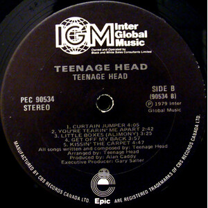"Teenage Head’s 1979 self-titled debut is a wonderfully bratty blast of youthful abandon crammed into 10 of the tightest rock ‘n’ roll tunes that this country has ever known. These four kids came out swinging, hammering away on their instruments until you could hear the blood dripping right there in the music. The songs are linked to the same kind of filthy grooves that gave birth to the New York Dolls and the Sex Pistols, and tracks like “Ain’t Got No Sense” and “You’re Tearin’ Me Apart” define the sound of four kids with nothing to go for but broke.