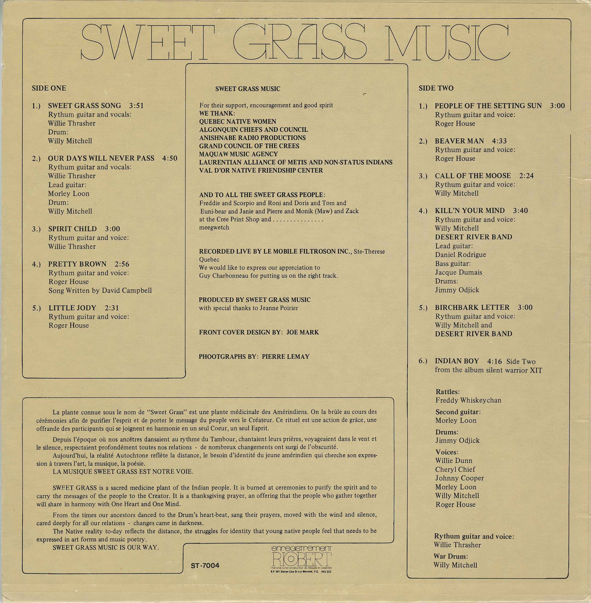 Willie Thrasher, Willy Mitchell & Roger House - Sweet Grass Music LABEL 01
