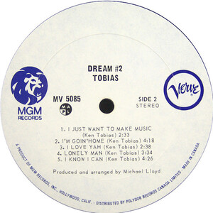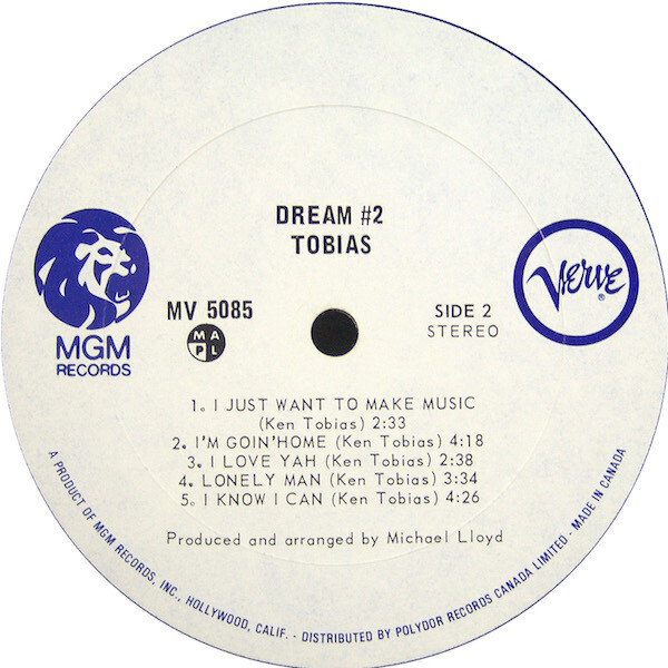 Tobias recorded his first solo album, Tobias/Dream No. 2, and the successful single "Dream No. 2" in 1972. His single, "I Just Want to Make Music," a statement of the songwriter's work ethic, became a Canadian top ten hit in 1973. Tobias recorded his next album, the country-rock The Magic's in the Music, in London, England for George Martin's AIR Studios in 1973. For Attic Records, Tobias next recorded the albums Every Bit of Love (1975), Siren Spell (1976), and Street Ballet (1977). The Ken Tobias Collection - So Far... So Good was issued in 1978; the 1984 recordings Ken Tobias - Friends (a children's record) and Gallery were his last albums.