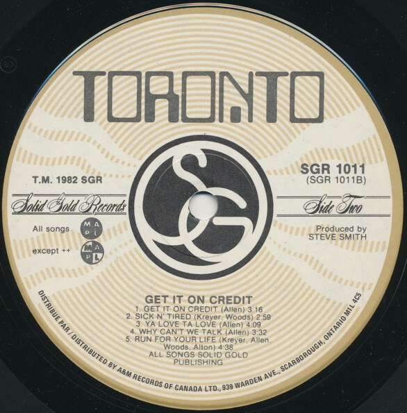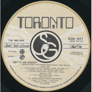 "Get It On Credit" was the third release for Toronto, a group whose founding members hailed from everywhere but that city. Guitarist and main songwriter Brian Allen came from Borden, an army base town 100km north of Toronto; second guitarist Sheron Alton emigrated from England to Canada's largest city; singer Holly Woods and keyboardist Scott Kreyer were both expatriate Americans from South Carolina and New York, respectively.