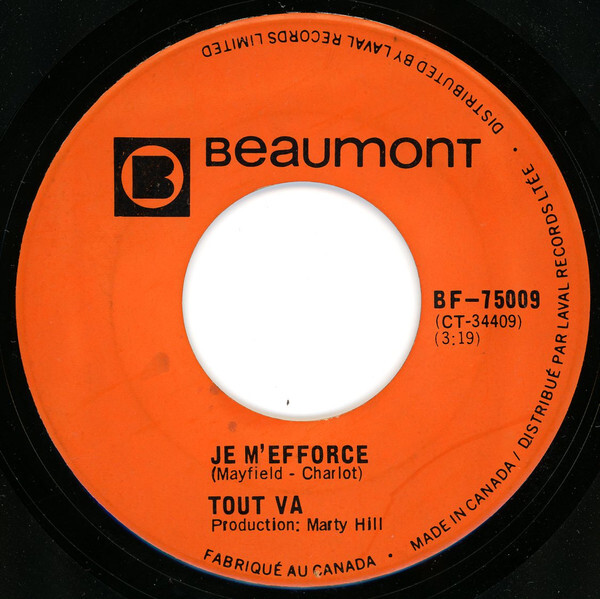 The B-side, "Je m’efforce," is a cover of a Curtis Mayfield composition, likely written for The Impressions. It carries the same quality production and strong performance, reinforcing that Tout Va was a group with immense potential, even if they only left behind this one recording.