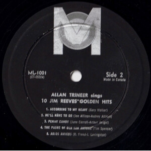 On this album the background band is The Hackamores, one of Canada's best known country groups, which, incidentally was formed by Dougie Trineer - Allan's brother. Allan and Dougie haven't worked together for many years but, although the reunion was long in coming - the result has been well worth the waiting.