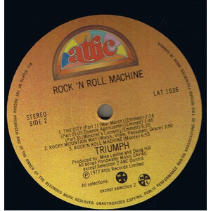 Rock & Roll Machine (also Rock 'N' Roll Machine) is the second studio album by Canadian hard rock band Triumph. It was first released in 1977 by Attic Records. The album contained in the band's first hit, a version of Joe Walsh's "Rocky Mountain Way".