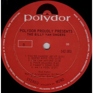 The Billy Van Singers were also featured on the compilations: CBC Song Market and Fall In Fashion Musical. The Laurie Bower Singers were also involved in this recording.