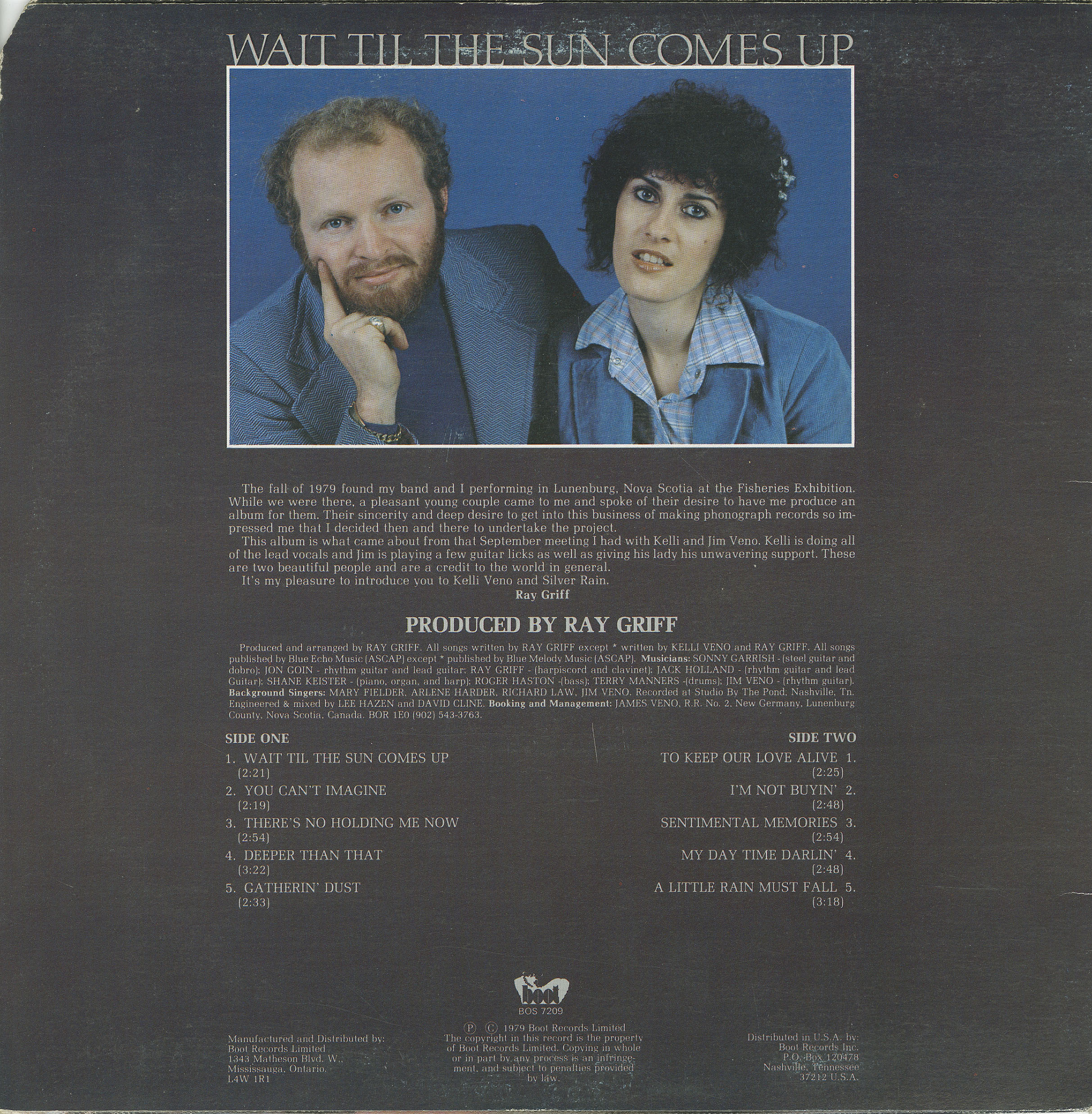 The fall of 1979 found my band and I performing in Lunenburg, Nova Scotia at the Fisheries Exhibition. While we were there, a pleasant young couple came to me and spoke of their desire to have me produce an album for them. Their sincerity and deep desire to get into this business of making phonograph records so impressed me that I decided then and there to undertake the project.