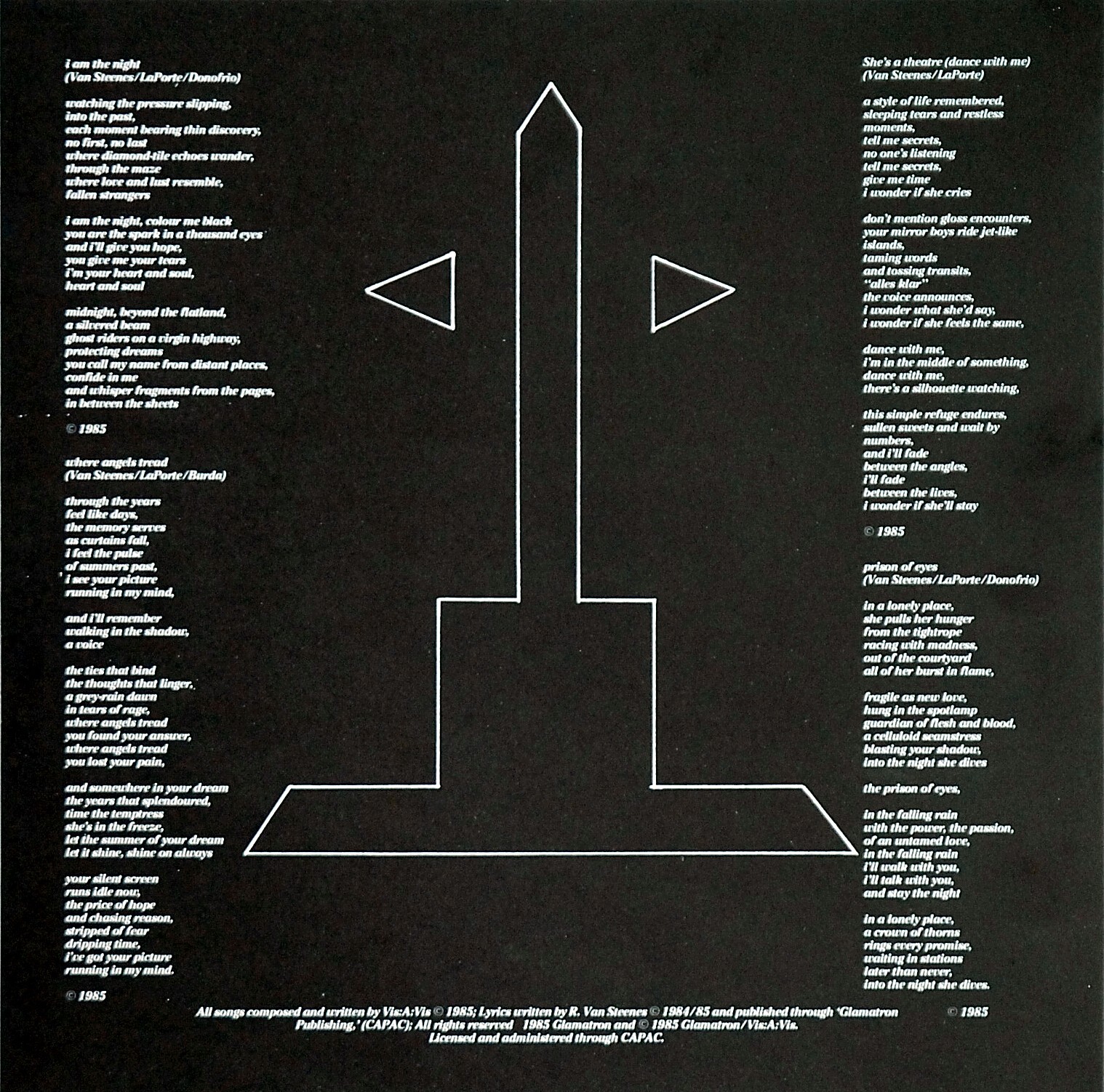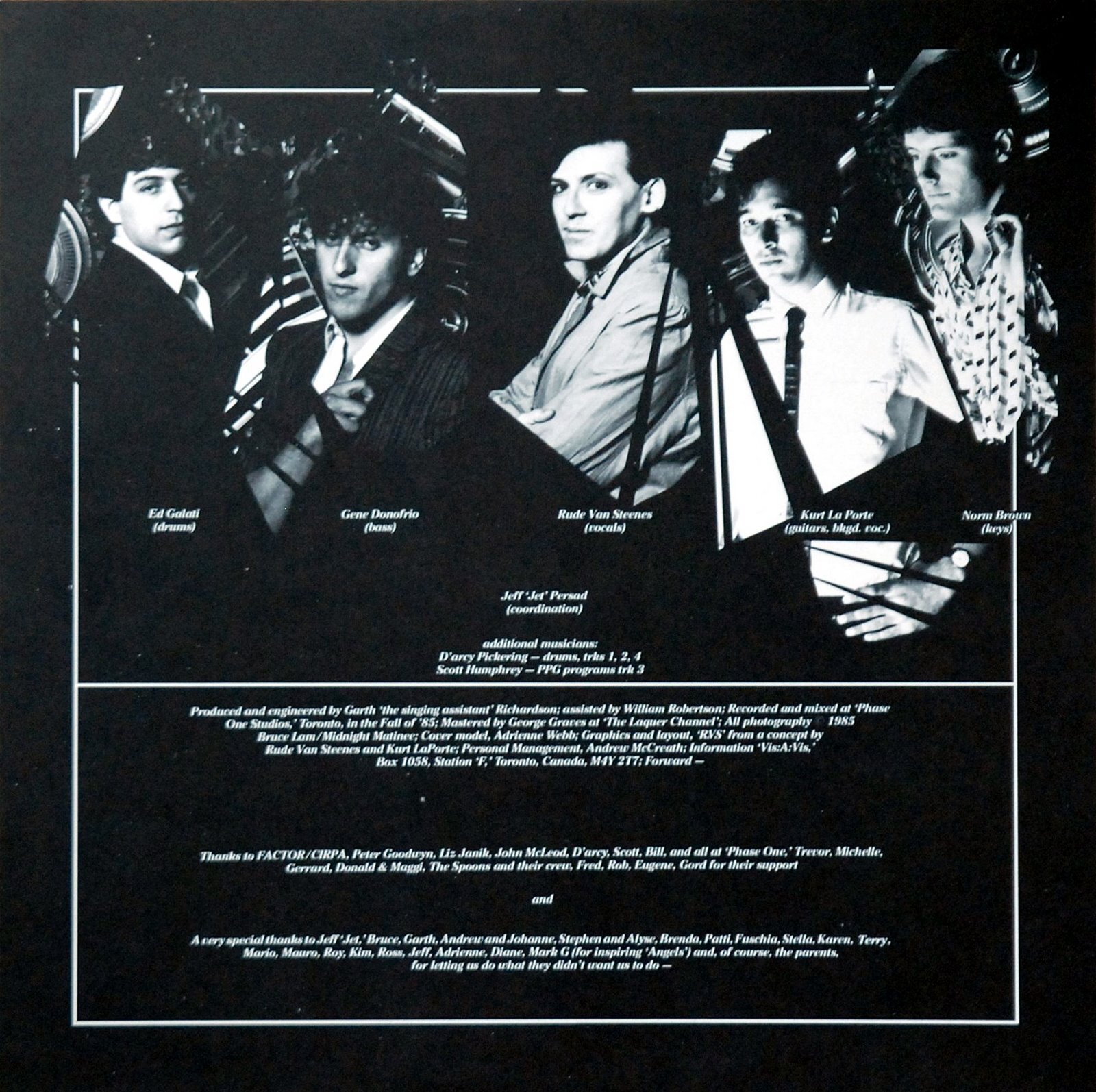 Recorded and mixed at ‘Phase One’ Studios, Toronto, in the Fall of ’85
