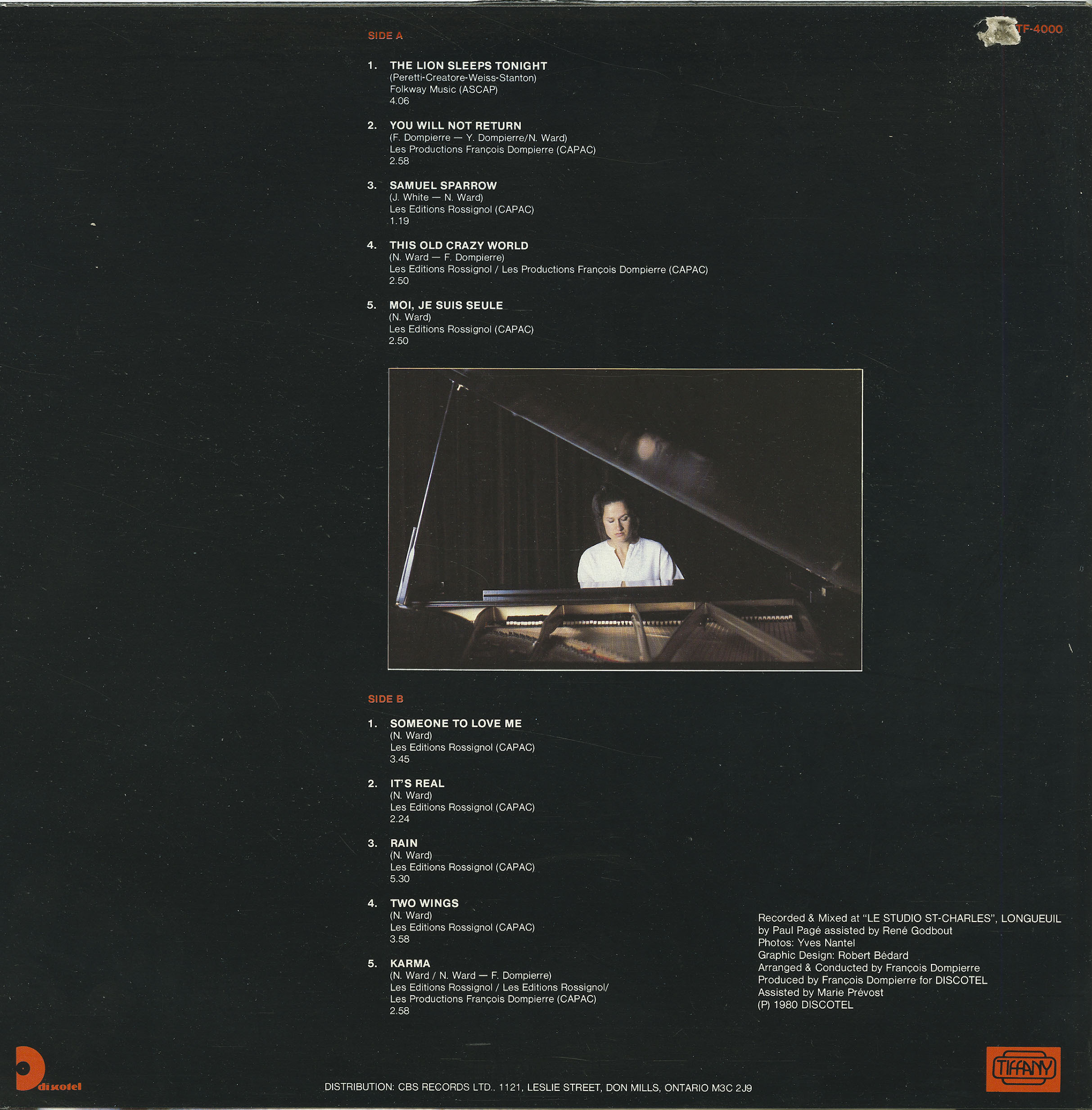Produced by Francois Dompierre for DISCOTEL, assisted by Marie Prevost