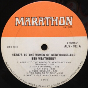 Weatherby, Ben - Here's To The Women of Newfoundland Side One
