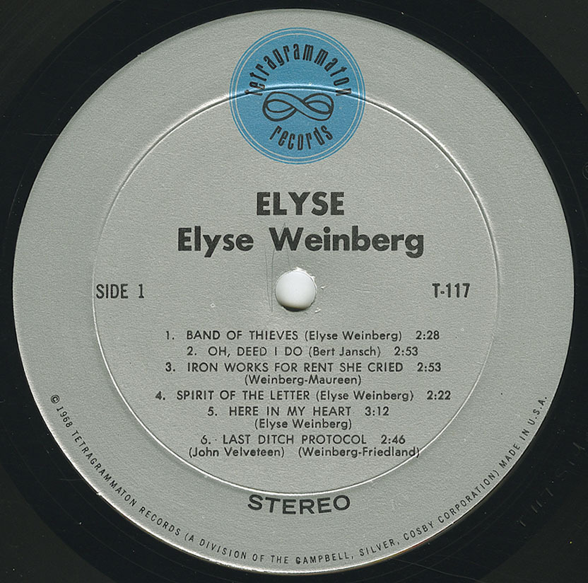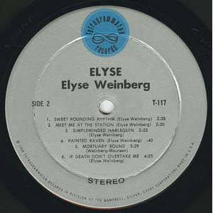 Elyse grew up and got her start performing in Toronto alongside friends like Young and Joni Mitchell. She later moved to Los Angeles where she recorded "Elyse", and has since lived in London, New Mexico, and Ashland, Oregon where she currently lives. She still writes and plans to record an album of new material in the near future. I hope you all enjoy this magical and wonderful album, a true lost classic, and one of the best albums of the 1960's or any other time!