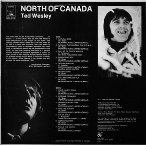 I’ve never been to the North West Territories . . . or Alaska . . . or the Yukon. And yet with Ted Wesley’s vivid descriptions in his songs of the North, the feelings created make it seem as if I’ve lived there all my life. It’s funny that a Polack (Ted’s real name is Wasylczyszyn) born in Northern Rhodesia and now living in Yellowknife should be our spokesman for the North, but then that’s the way the North is — people working together as brothers regardless of colour or creed, proud of their heritage as they develop some of the greatest terrain on this earth. I invite you to listen to this album. While hearing it I’m certain you will witness the same experience I did.