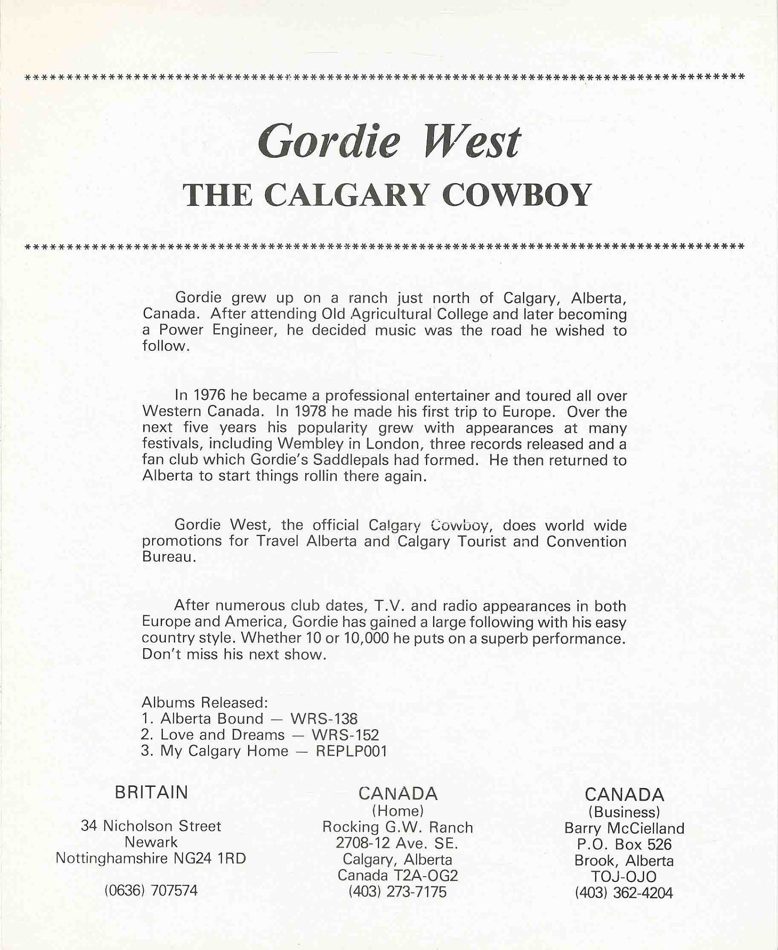 West, Gordie - My Calgary Home