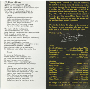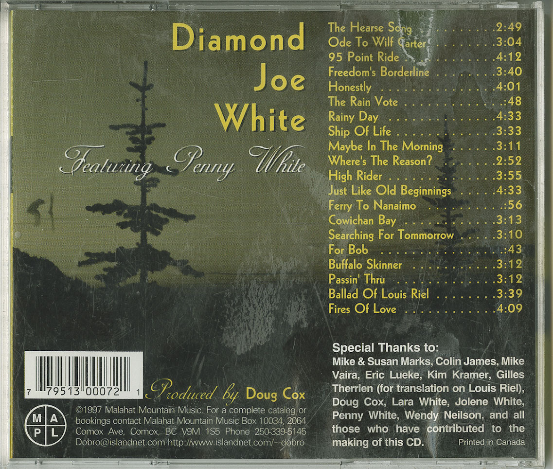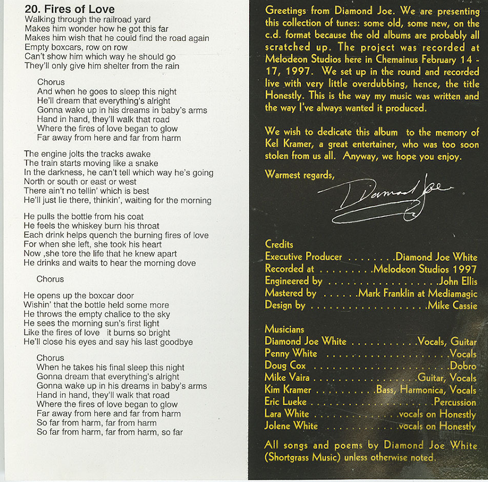 All songs and poems by Diamond Joe White (Shortgrass Music) unless otherwise noted.