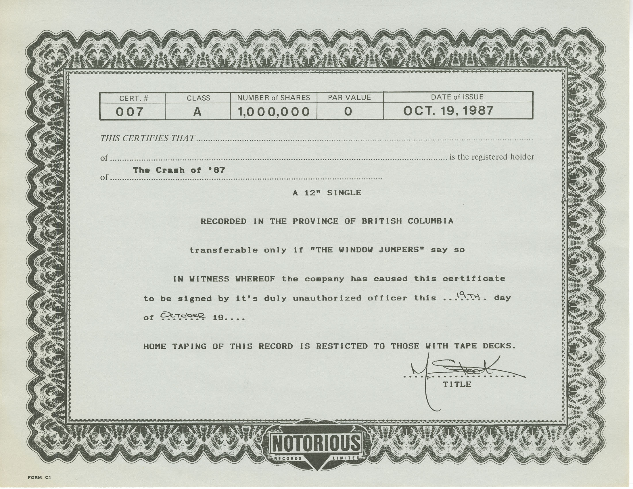 © 1987 Notorious Publishing