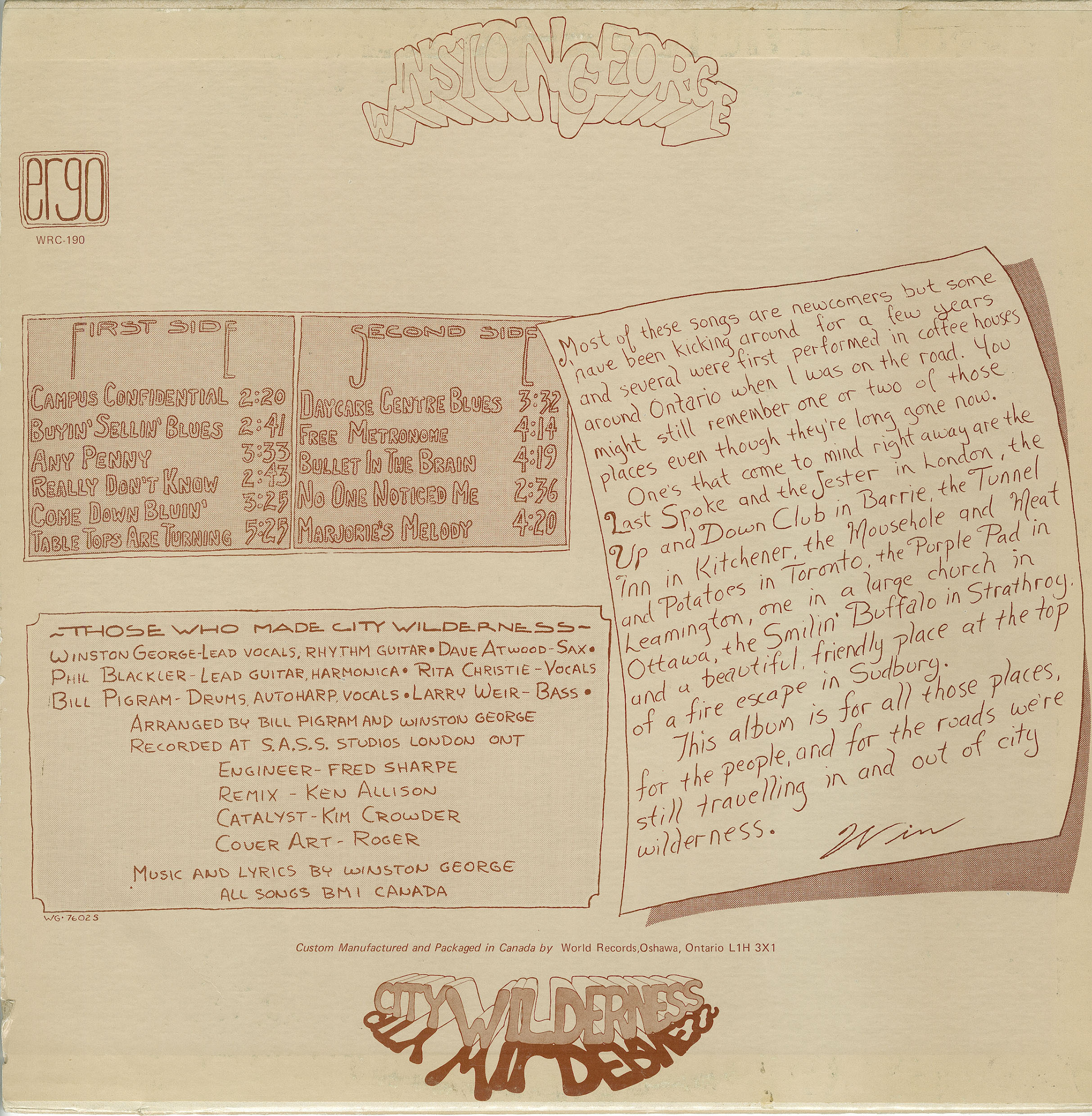 Label: Ergo, World Record Corp. WRC 190